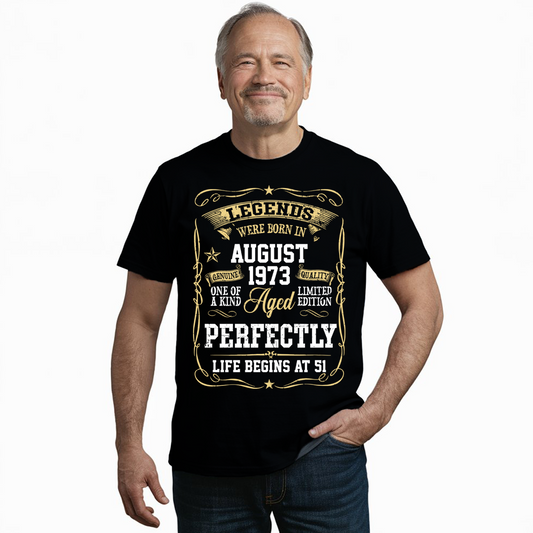 LEGENDS WERE BORN IN AUG 1973 LIFE BEGINS AT 51 LUXURY TSHIRT
