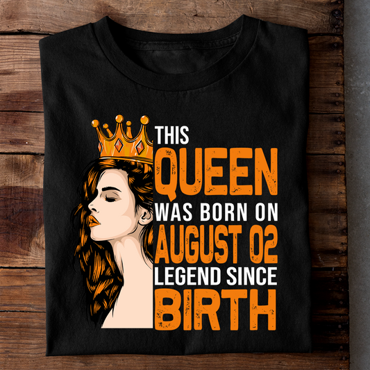 THIS QUEEN WAS BORN ON AUG 02 LEGEND SINCE BIRTH LUXURY TSHIRT