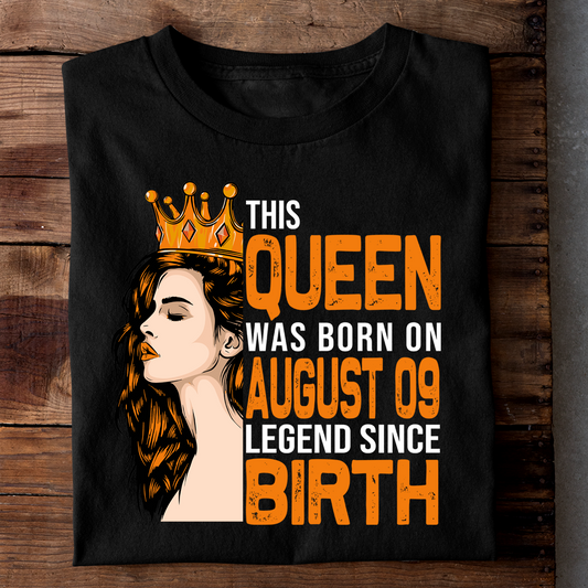 THIS QUEEN WAS BORN ON AUG 09 LEGEND SINCE BIRTH LUXURY TSHIRT