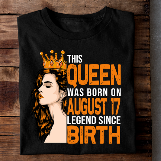 THIS QUEEN WAS BORN ON AUG 17 LEGEND SINCE BIRTH LUXURY TSHIRT