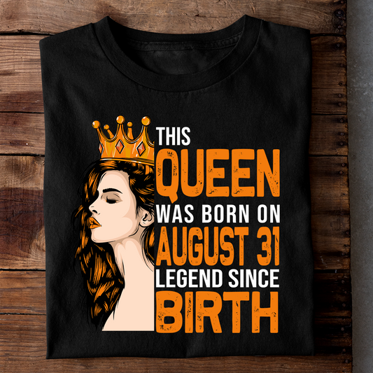 THIS QUEEN WAS BORN ON AUG 31 LEGEND SINCE BIRTH LUXURY TSHIRT